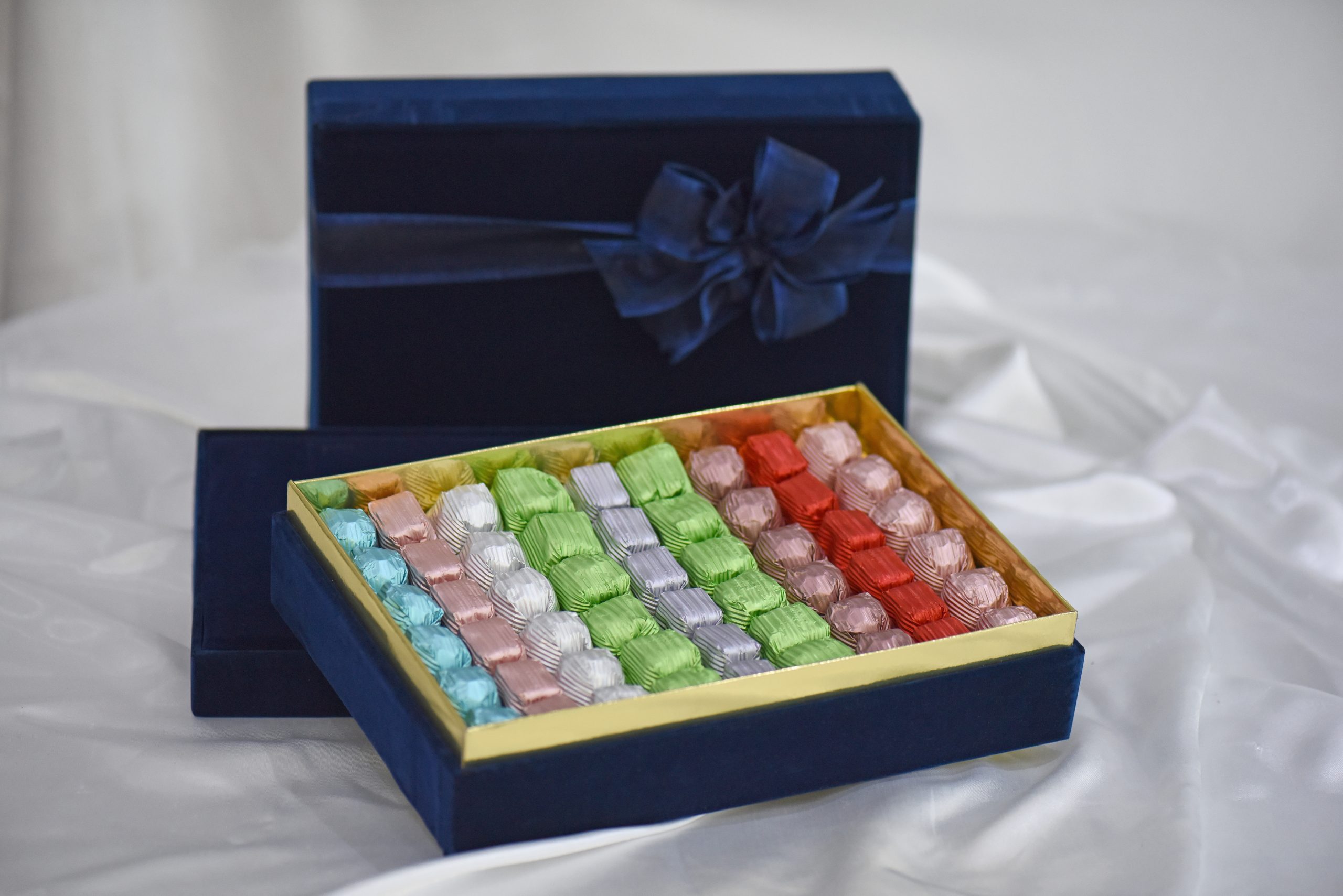 Kadife Kutu içerisinde Yaldızlı Çikolata , lüks sunumlarınız için uygun olabilecek hediye önerilerimizden birtanesi.